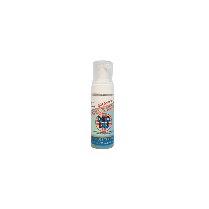 Lo Shampoo DEO DIS PRESIDIO MEDICO CHIRURGICO in diluizione è indicato per sanificare capi problematici che presentano cariche batteriche quali: muffa, funghi, cattivi odori, inquinanti batterici come urina animale. Esente da residui non lascia mai aloni e non scolora. Delicatamente profumato al mentolo. Nelle versione Foam 150 ml vendibile al pubblico. CONSIGLI DI UTILIZZO Spruzzare lo Shampoo sul capo da detergere e sanificare, attendere 2 minuti e spazzolare con cura, ripetere l'operazione al bisogno.